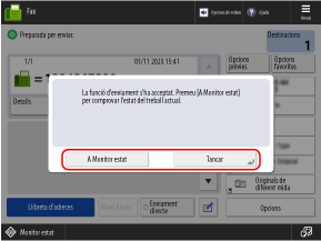 Comproveu que la destinació sigui correcta i premeu [Sí].