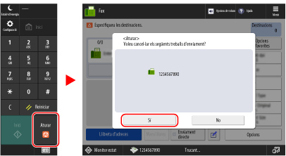 Quan envieu un fax amb l'equip, podeu cancel·lar l'operació d'enviament de fax seguint les instruccions de la pantalla.