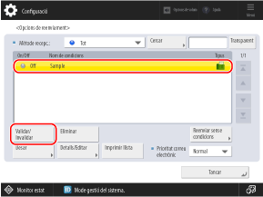 Seleccioneu una condició de reenviament que estigui desada i premeu [Validar/ Invalidar].