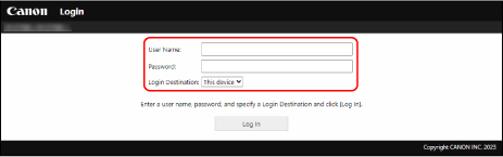 Per utilitzar Remote UI (IU remota), introduïu l'adreça IP de l'equip en un navegador web d'un ordinador i inicieu la sessió com a administrador o com a usuari general. Les funcions disponibles amb Remote UI (IU remota) varien en funció dels privilegis que té l'usuari connectat.