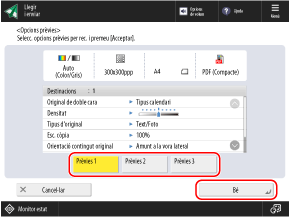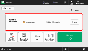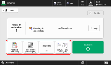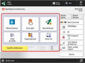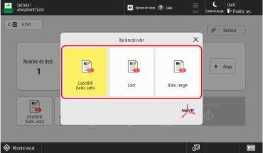 Amb Lectura i enviament fàcils/Lectura fàcil, podeu configurar funcions bàsiques, com ara les destinacions especificades i les opcions de color, fent operacions senzilles amb els botons.