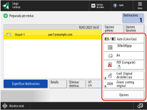 Per especificar com a destinació l'adreça electrònica de l'usuari que inicia la sessió, premeu [Enviar a la meva adreça de correu electrònic].