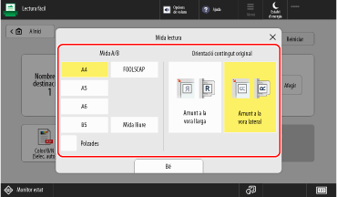 Premeu el botó de configuració de la mida de la lectura i seleccioneu la mida de lectura i l’orientació de l'original.