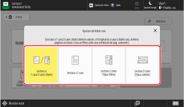 Aquesta opció només està disponible quan [Lectura a 1 cara/2 cares (Auto)] s'ha configurat a les opcions de lectura a doble cara.