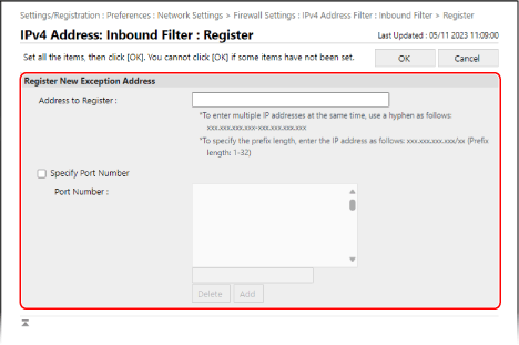 Es desa l'adreça d'excepció i es torna a mostrar la pantalla per configurar les opcions del filtre d'adreces IP.