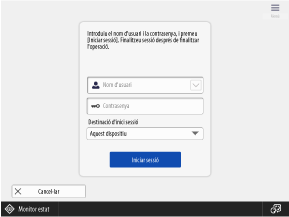 Els usuaris inicien la sessió introduint un nom d'usuari i una contrasenya amb el teclat que apareix al tauler de control. Si el nom d'usuari i la contrasenya només consten de números, podeu configurar les opcions perquè l'inici de sessió s'activi només amb les tecles numèriques.