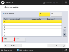 Seleccioneu un número que no tingui informació de camí estàtic desada i premeu [Editar].