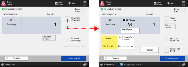 A la pantalla d'opcions d'impressió, premeu [Canviar opc. d'impressió]