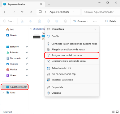 Feu clic amb el botó dret a [Aquest ordinador] i, a continuació, a [Assigna una unitat de xarxa].