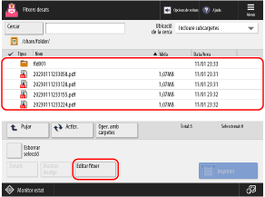 Podeu utilitzar el tauler de control de l'equip per dur a terme les operacions següents per als fitxers desats a l'Espai avançat: