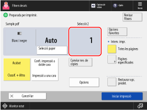 * Quan se seleccionen diversos fitxers, els fitxers s'imprimeixen en l'ordre en què s'han seleccionat (ordre dels números de caselles de selecció).