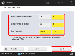 * Quan s'estableix en [On], no és possible connectar-se a l'Espai avançat des d'un sistema operatiu client que no admeti la comunicació amb xifratge SMB 3.0.