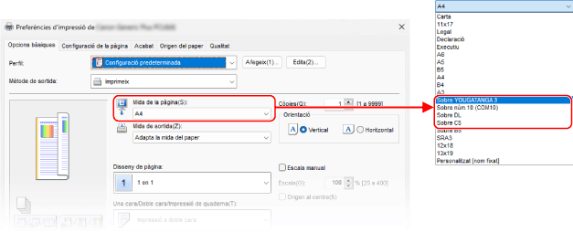 A [Paper Size], seleccioneu la mida dels sobres carregats.