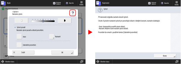 Po stisknutí [Konec] na obrazovce s nápovědou dojde k ukončení a návratu na předchozí obrazovku.