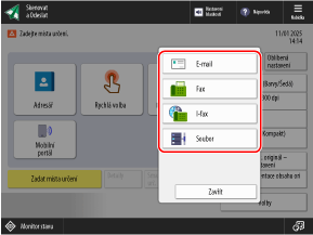 Chcete-li zadat místo určení, které není registrováno v adresáři nebo na serveru LDAP, zadejte místo určení přímo z obrazovky skenování (Skenovat a Odeslat) nebo faxování na ovládacím panelu.