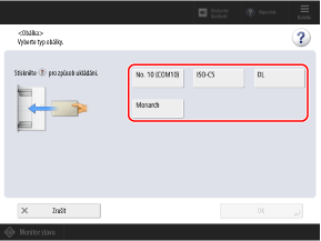 Když nastavíte velikost papíru pomocí následujícího postupu, typ papíru se pro obálky nastaví automaticky.