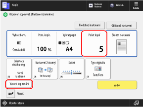 Na obrazovce pro kopírování zadejte počet kopií a stiskněte [Vzorek kopírování].