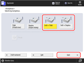Vyberte [Sešít + Třídit] nebo [Sešít + Skupina] a stiskněte [Další].