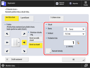 Můžete stisknout [Nastavit detaily] a nakonfigurovat nastavení pro přidání vlastního znakového řetězce k číslům stránek nebo zadat rozsah stránek, které se mají vytisknout.