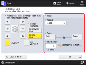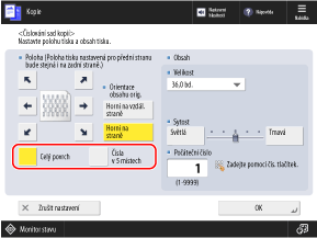 *Pokud jsou nastavení provedena tak, aby se k číslům sady kopií přidala další informace, nemůžete vybrat [Celý povrch] a [Čísla v 5 místech].