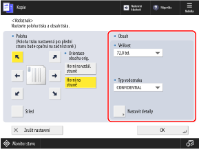 Stisknutím [Nastavit detaily] můžete změnit stránky, na které se má vodoznak vytisknout, nebo změnit způsob tisku (průhledný nebo překryvný tisk).