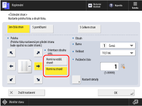 Tuto možnost vyberte, když jsou horní a dolní část originálu z vašeho pohledu umístěny vodorovně.
