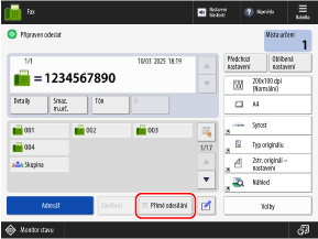 Provedení kontroly spojení s příjemcem před odesíláním (Přímé odesílání)