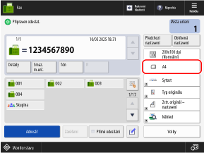 Pokud neznáte velikost (délku stran) vloženého originálu, stiskněte [Volná velikost]. V tomto případě nemusíte provádět krok 2 (zadejte délku stran).