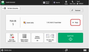 Na ovládacím panelu stiskněte tlačítko [Skenovat a Odeslat] na obrazovce [Hlavní obrazovka].