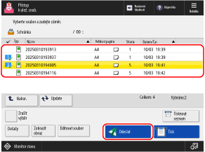 Na ovládacím panelu stiskněte tlačítko [Přístup k uloženým souborům] na obrazovce [Hlavní obrazovka].