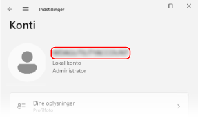 Kontrollér brugernavnet, der vises på højre side af ikonbilledet.