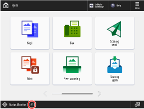 Hjem] på kontrolpanelet. Som standard vises skærmen [Hjem], efter at strømmen er tændt og umiddelbart efter, at startskærmen lukker, og hvis der ikke udføres nogen handlinger i en bestemt periode på hver skærm.