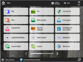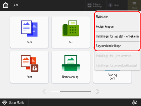 Du kan omarrangere funktions- og indstillingsknapperne på skærmen [Hjem] og ændre baggrunden til et hvilket som helst af de forudindstillede billeder.