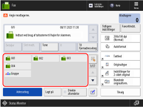På faxskærmen vises kun hurtigkaldstasterne til fax- og gruppemodtagere.