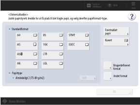Når der er lagt papir i universalbakken, vises skærmen til indstilling af papiret som standard på betjeningspanelet. Indstil papirstørrelsen og -typen i overensstemmelse med det ilagte papir.