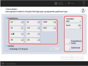 Papirstørrelsen og -typen er indstillet.