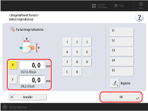 Indtast værdierne i [X] og [Y], og tryk på [OK].