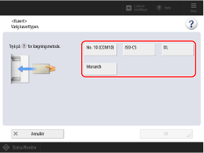 Når du indstiller papirstørrelsen med følgende procedure, indstilles papirtypen automatisk for kuverterne.