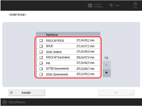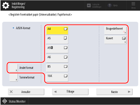 For de papirstørrelser, der vises, når der trykkes på [Andet format] skal du gennemgå følgende: