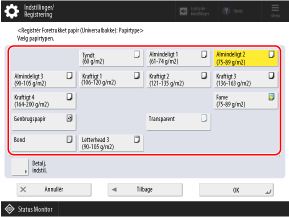 *Hvis den ilagte papirtype ikke vises på listen, skal du registrere papirtypen.