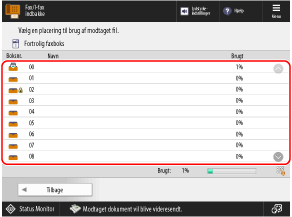Skærmbilledet for valg af lagerplacering for den modtagne fax vises.