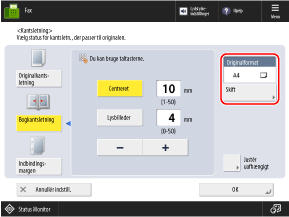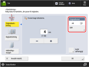 Tryk på [Skift], vælg størrelsen på originalen, og tryk på [OK].