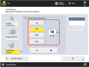 Når du indtaster de individuelle slettebredder for top, bund, venstre og højre, skal du trykke på [Justér uafhængigt], og indtaste slettebredderne.