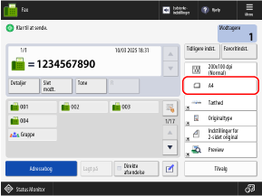 På faxskærmen skal du trykke på indstillingsknappen for originalstørrelsen.