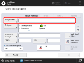 Du kan indstille faxnummeret (afsenderens faxnummer), underadresse og adgangskode som betingelser.