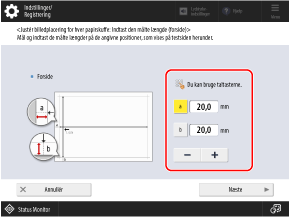 Mål længderne på forsiden, indtast værdierne, og tryk på [Næste].