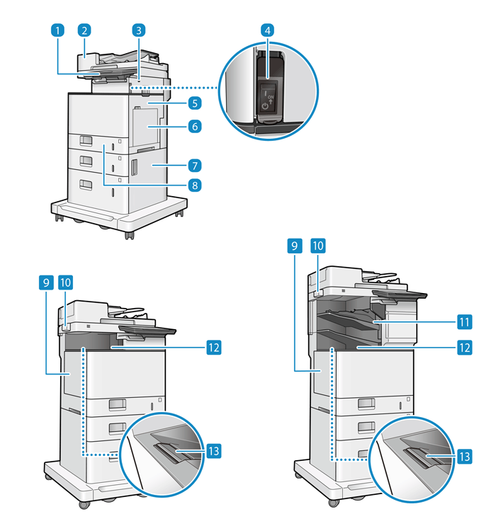 Se følgende for nærmere oplysninger om konfigurationen af maskinen, når valgfrit udstyr er installeret, og delnavnene på de valgfrie udstyrsenheder.
