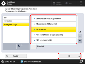 Vælg det indstillingselement, der skal registreres som genvej, og tryk på [OK].