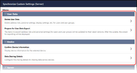 Skærmbilledet [Synchronize Custom Settings (Server)] vises.
