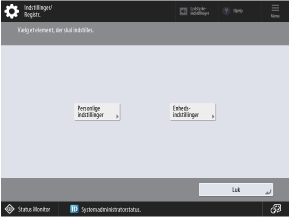 Afhængigt af menupunktet [Indstillinger/Registr.] kan det være nødvendigt med administratorrettigheder for at vise eller ændre indstillingerne.